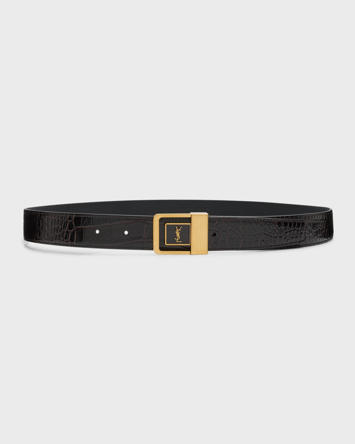 - Saint Laurent crocodile-embossed calf leather belt with square buckle - Adjustable buckle closure - Gold-tone hardware - Made in Italy