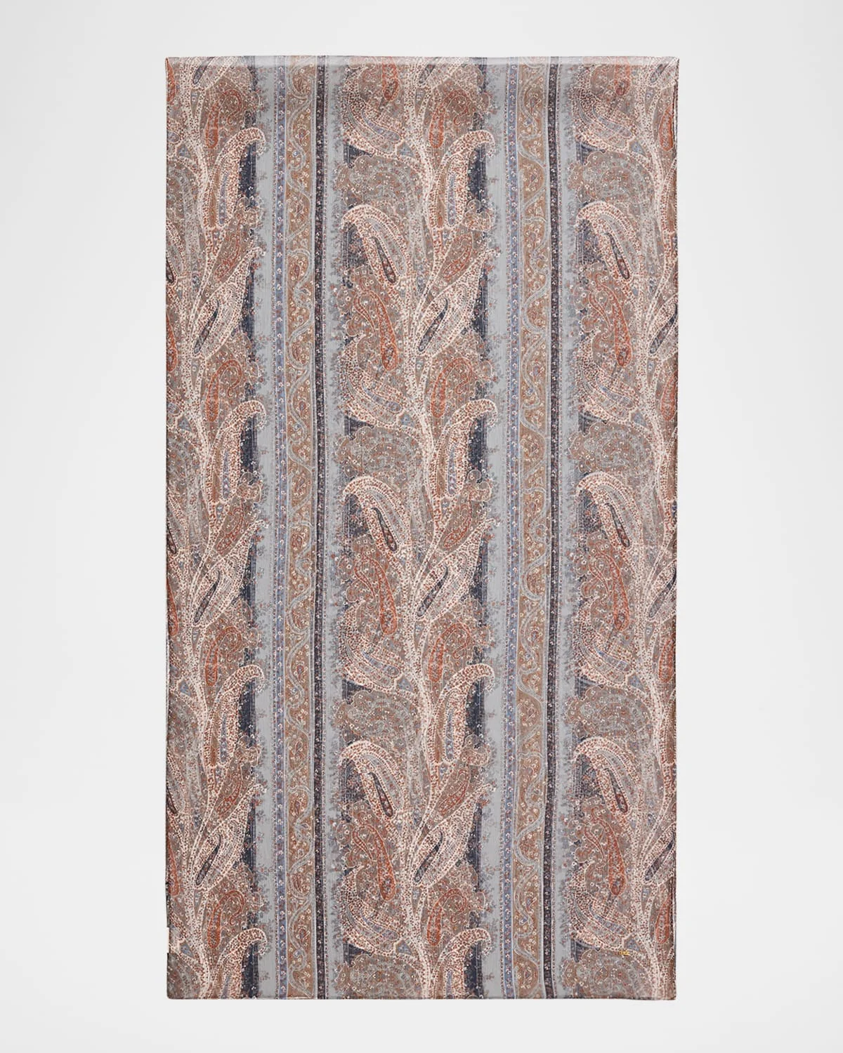 Saint Laurent silk scarf printed in a graphic paisley motif Approx. 78.7"L x 23.6"W Contrast trim Can be styled multiple ways Silk Made in Italy