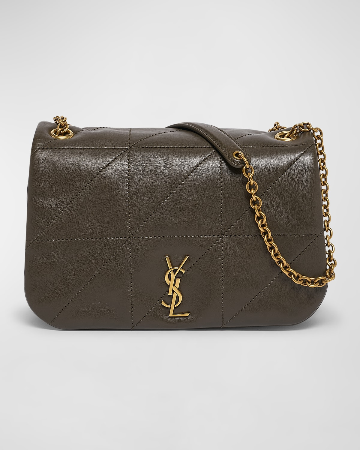 - Saint Laurent "Jamie 4.3" shoulder bag in patchwork leather - Features signature YSL logo lettering - Sliding chain shoulder strap can be doubled, 11.4" drop - Flap top with magnetic closure - Interior, one slip pocket - Bronze hardware - Approx. 4.7"H x 7.8"W x 2.7"D - Made in Italy - Proposition 65 warning for California residents