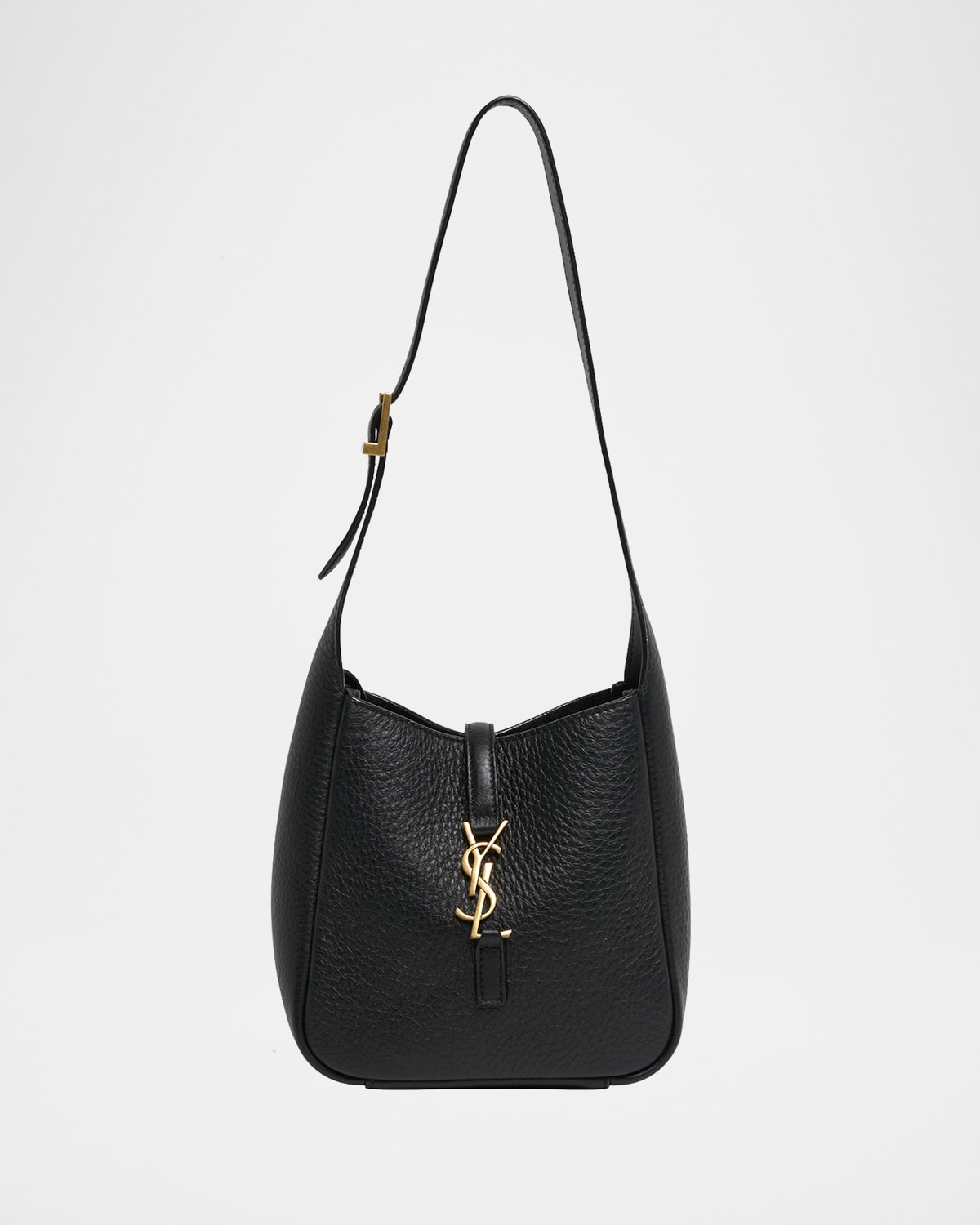 - Saint Laurent "Le 5 A 7" hobo bag in grained deer leather - Adjustable shoulder strap - Center YSL strap closure - Golden hardware - Approx. 6.7"H x 14.2"W x 2.4"D - Professional cleaning recommended - Made in Italy - Proposition 65 warning for California residents