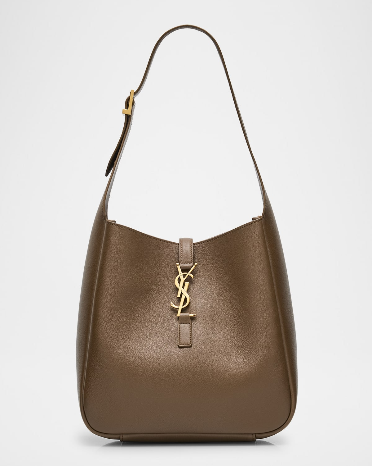 - Saint Laurent "Le 5 A 7" hobo bag in leather - Adjustable buckle shoulder strap - Golden hardware - Open top with YSL center strap - Approx. 6.7"H x 10.2"W x 4.3"D - Made in Italy