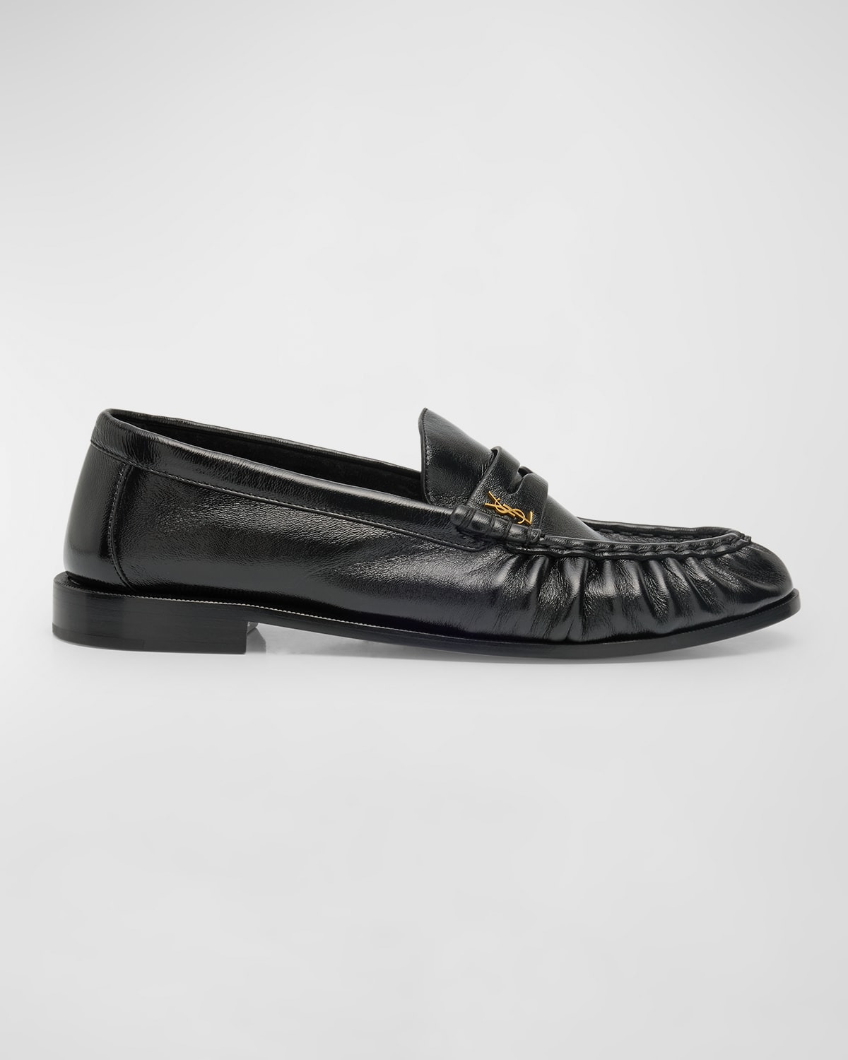 - Saint Laurent "Le Loafer 15" penny slippers in nappa calf leather - Stacked heel - Round moc toe - Leather penny keeper strap with Cassandre hardware - Leather sole - Slip-on style - Made in Italy