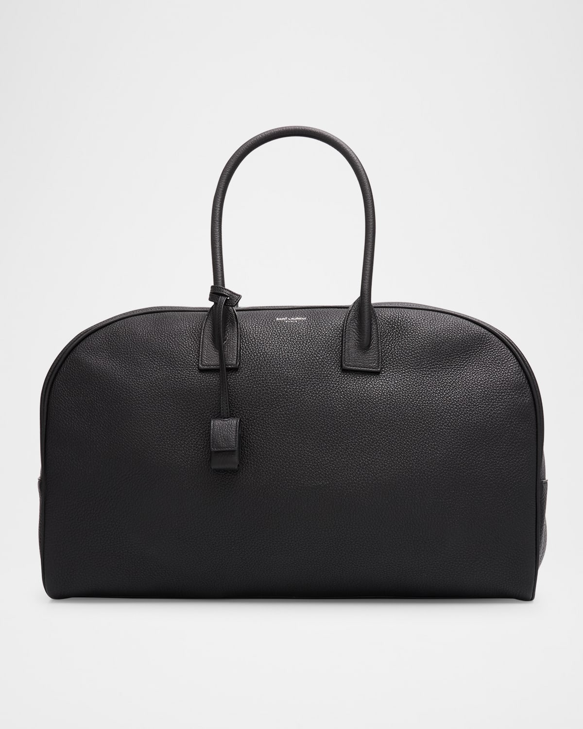 - Saint Laurent duffel bag in in grained calf leather - Approx. 11.8"H x 18.9"W x 10.6"D - Rolled top handles - Two-way zip closure - Two zip pockets - Removable leather-encased padlock charm - Silvertone hardware - Canvas lining - Made in Italy