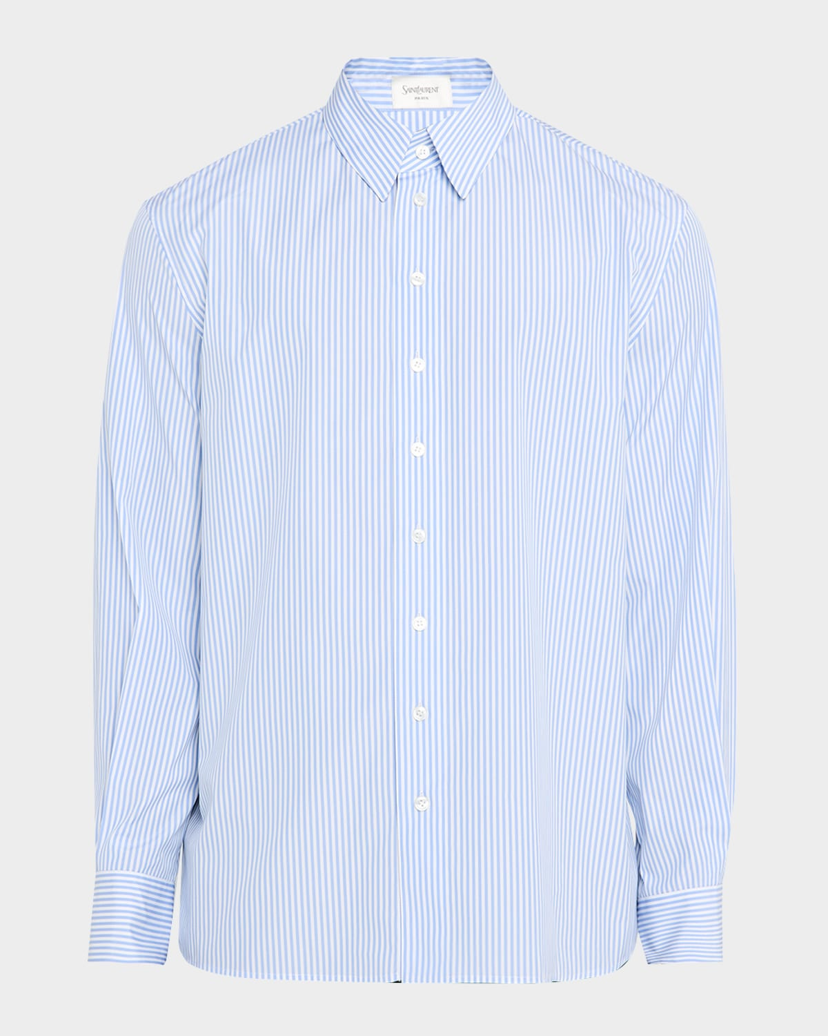- Saint Laurent sport shirt in cotton adorned with a classic pinstripe print - Point collar - Button placket - Long sleeves - Round barrel cuffs - Rounded hem - Relaxed fit - Cotton - Made in Italy