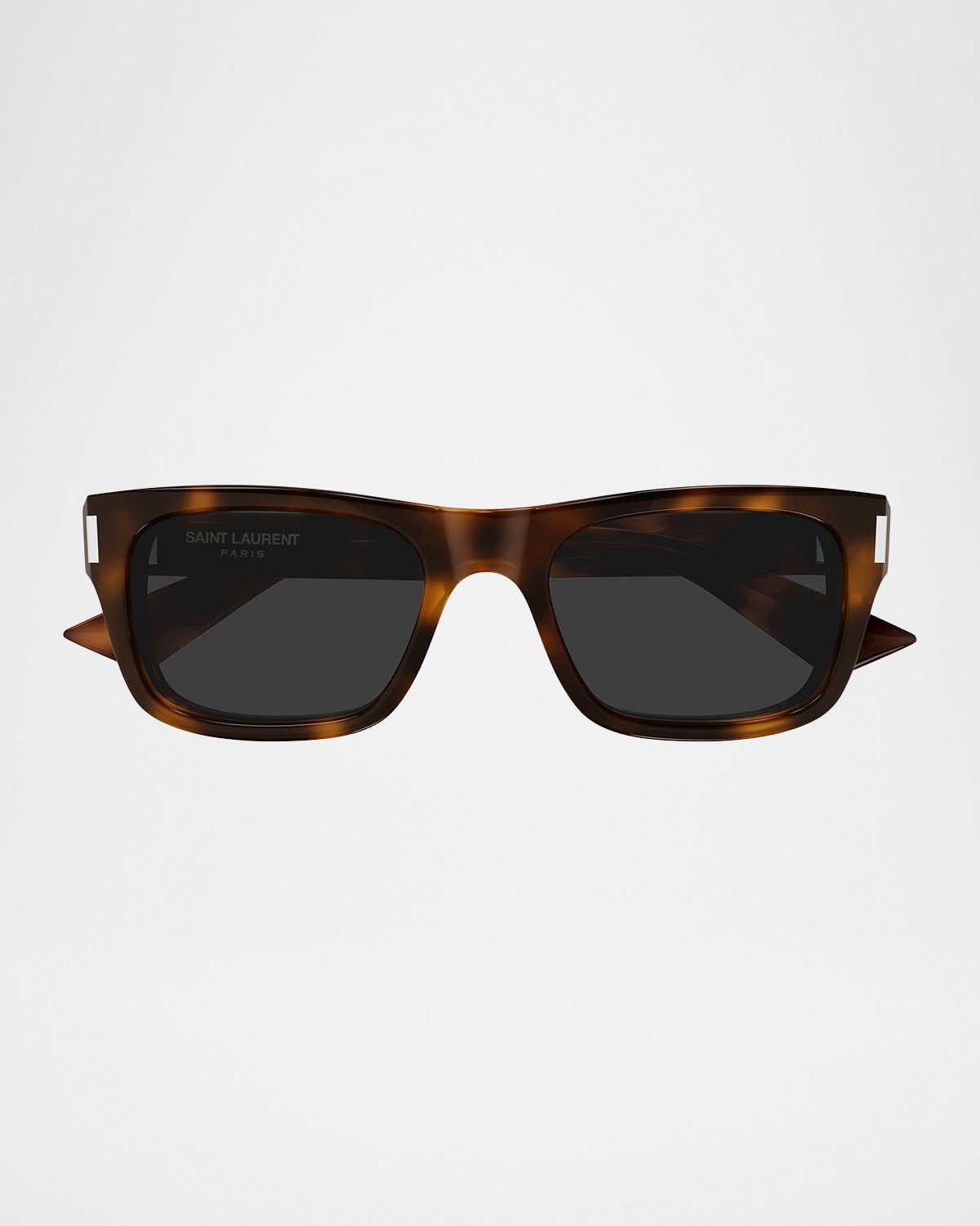 Made in Japan, these Saint Laurent sunglasses feature a rectangular silhouette with exposed metal corewire for subtle branding. Lens/bridge/temple (in mm): 5318145 100% UVA/UVB protection Saddle nose bridge Engraved logo on the temples Plastic 100% UVA/UVB protection Made in Japan
