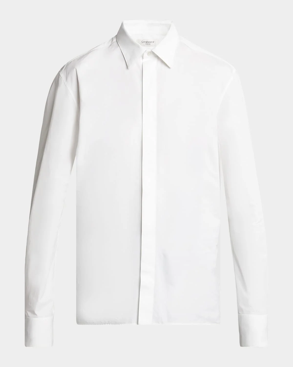- Saint Laurent solid sport shirt - Point collar - Concealed button placket - Long sleeves - Two-button barrel cuffs - Cotton - Made in Italy