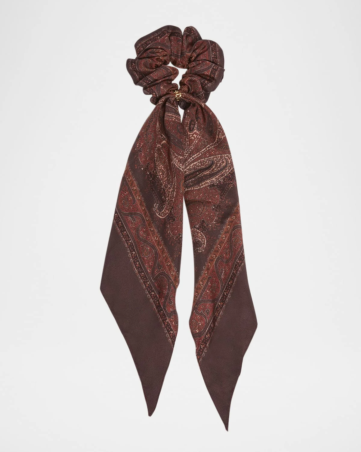 - Saint Laurent paisley printed silk scarf scrunchie with long band - Made in Italy