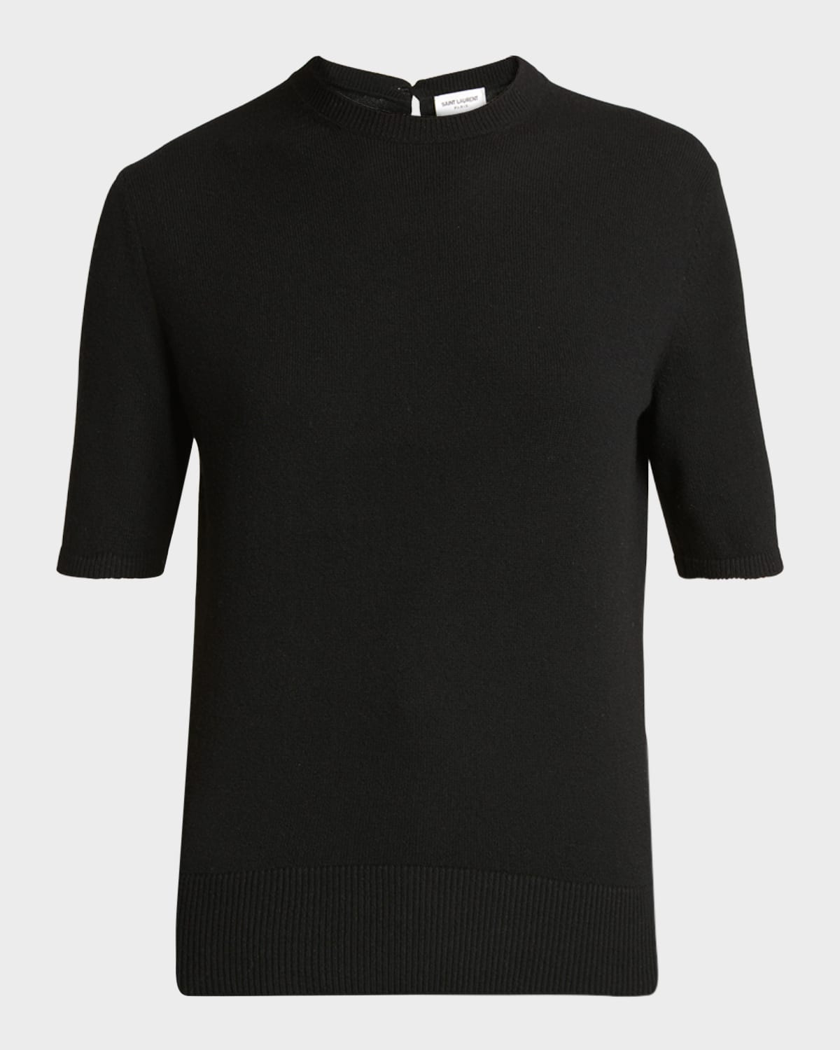 Saint Laurent sweater Crew neckline Short sleeves Relaxed fit Ribbed cuffs and hem Button/keyhole back Wool Made in Italy