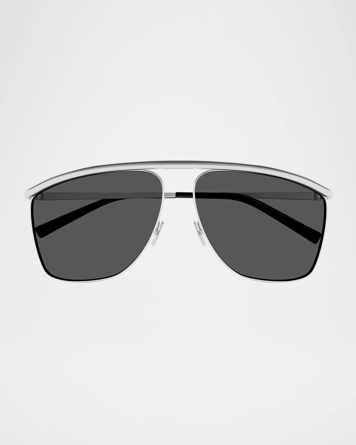- Saint Laurent "SL820 Victorie" metal aviator sunglasses - Eye/bridge/temple (in mm): 61-13-135 - Solid lenses - Brow bar - Adjustable nose pads - Thin, tapered arms - Capped earpieces - Metal - 100% UVA/UVB protection - Made in Japan - Proposition 65 warning for California residents