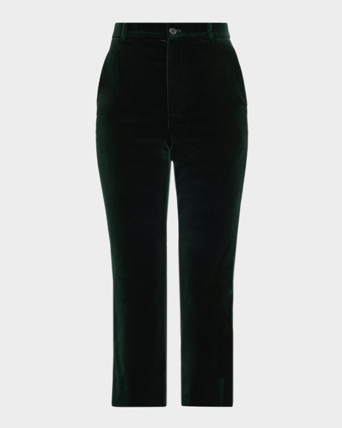 - Made from rich velvet, these trousers by Saint Laurent offer a plush, soft finish with a subtle sheen that elevates any look - High rise - Slanted side and back welt pockets - Full length - Tailored straight-cut legs - Slightly flared at the hem to create an elongating effect - Button/zip fly; belt loops - Cotton/elastane - Made in Italy
