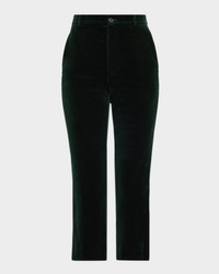 Cropped cotton-velvet slim-leg pants Green