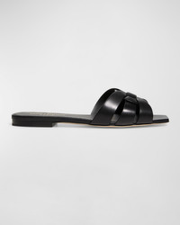 - Saint Laurent sandals in chrome-free and metal-free tanned leather. - 0.2" flat heel. - Open toe. - Woven vamp. - Padded insole. - Slide-on style. - Leather sole. - Made in Italy. - Size Note: Saint Laurent shoes run small. Please order a 1/2 size larger than you typically wear. Heel height may vary by size.