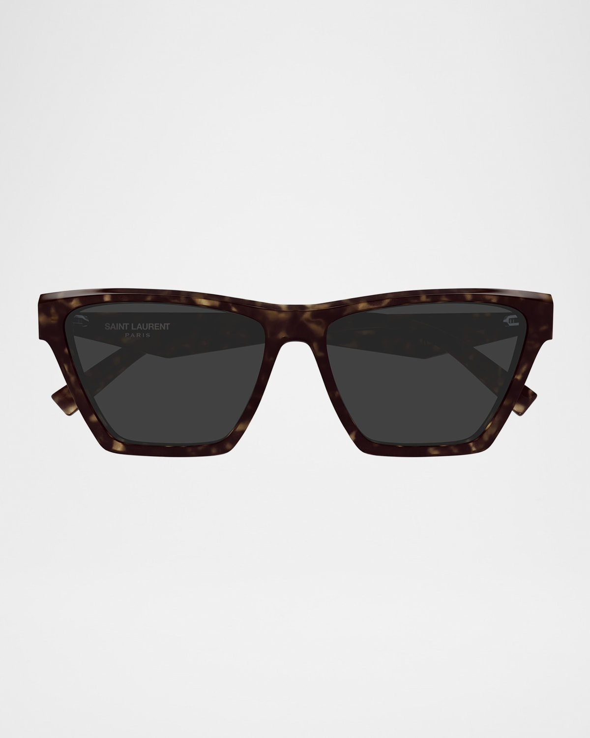 - Saint Laurent cat-eye sunglasses in acetate - Lens/bridge/temple (in mm): 58-15-145 - Features engraved YSL logo on temples - Solid-color lenses - Wide, tapered arms - 100% UVA/UVB protection - Made in Japan - Proposition 65 warning for California residents