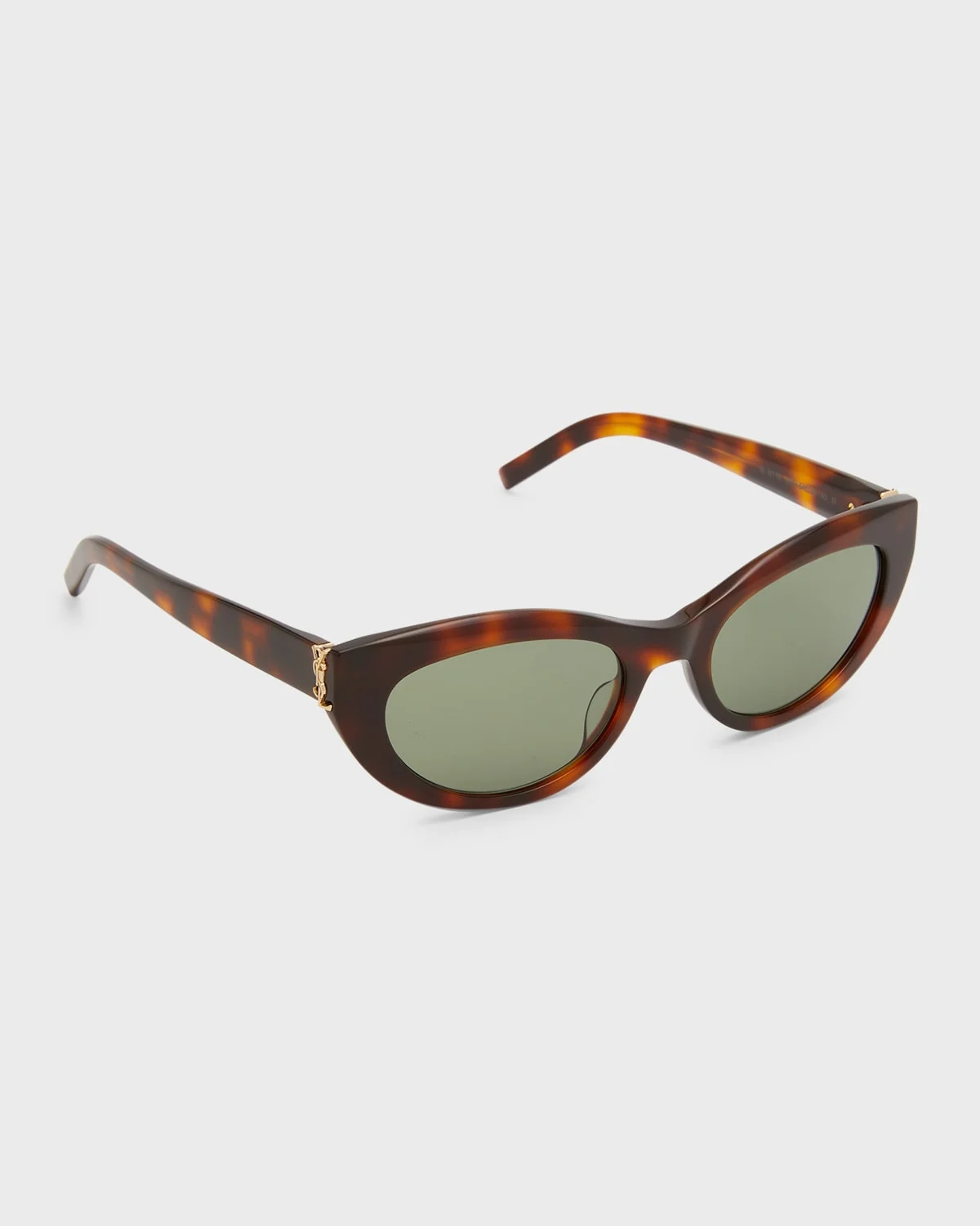 Saint Laurent cat-eye sunglasses in acetate & nbsp; Lens/bridge/temple (in mm): 54-20-140 Saddle nose bridge & nbsp; YSL accent at hinges & nbsp; Thin, tapered arms & nbsp; 100% UVA/UVB protection Made in Italy Proposition 65 warning for California residents