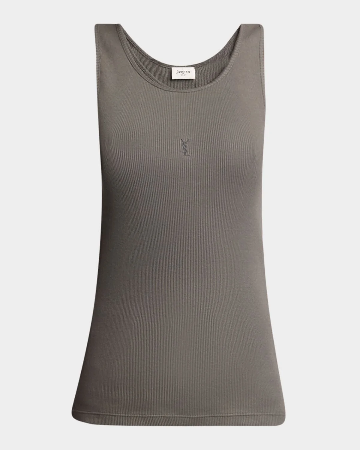- Saint Laurent ribbed knit tank top featuring YSL embroidered chest - Scoop neckline - Sleeveless - Relaxed fit - Pullover style - Cotton - Made in Italy