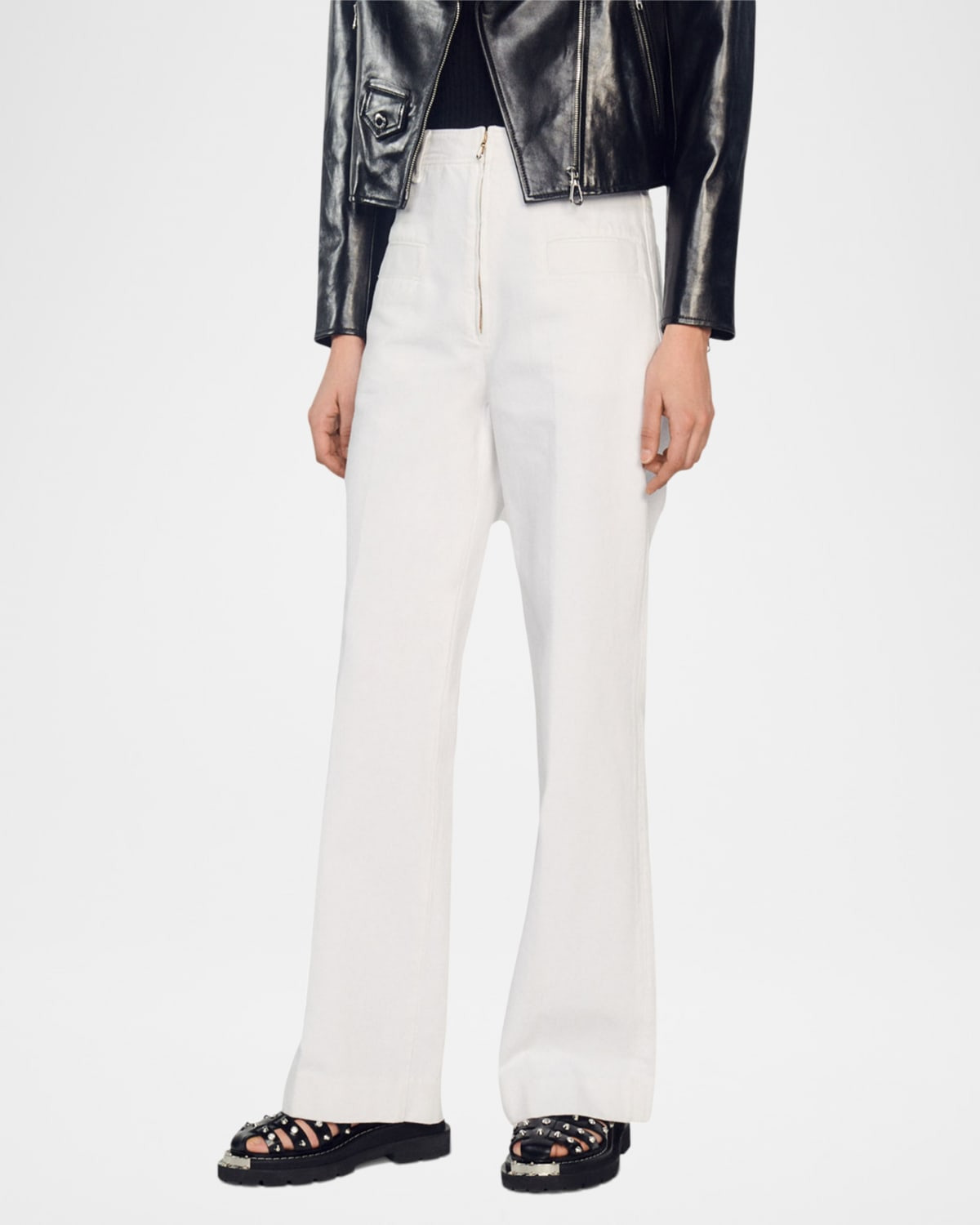 Sandro "Bari" canvas jeans Full length High rise Wide legs Piped pockets at the front Patch pockets on the back Zip fly; belt loops Cotton Unlined Hand wash or dry clean Imported