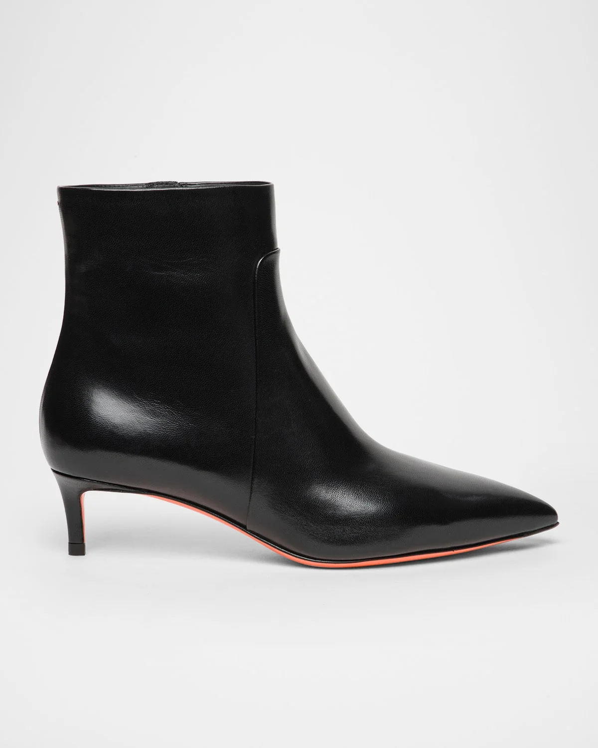 A sleek ankle silhouette, these boots by Santoni are crafted from smooth calf leather 1.75 in / 45 mm covered kitten heel Pointed toe Side zip closure Made in Italy