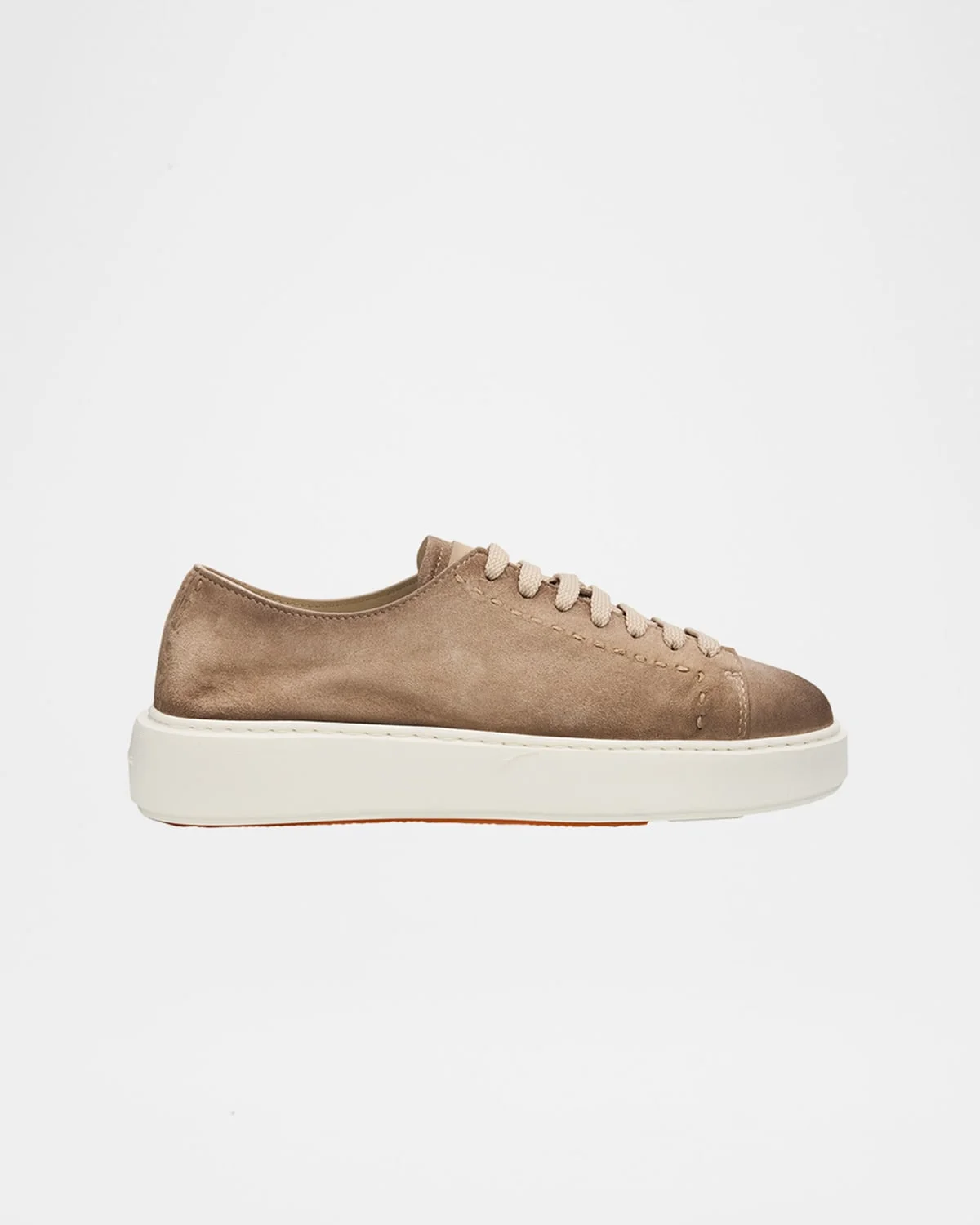 Santoni & apos;s "Clean Icon" low-top sneakers are crafted from suede with tonal whipstitch detailing & nbsp; 1.38 in / 35 mm flatform heel Round toe Lace-up vamp Rubber outsole Made in Italy