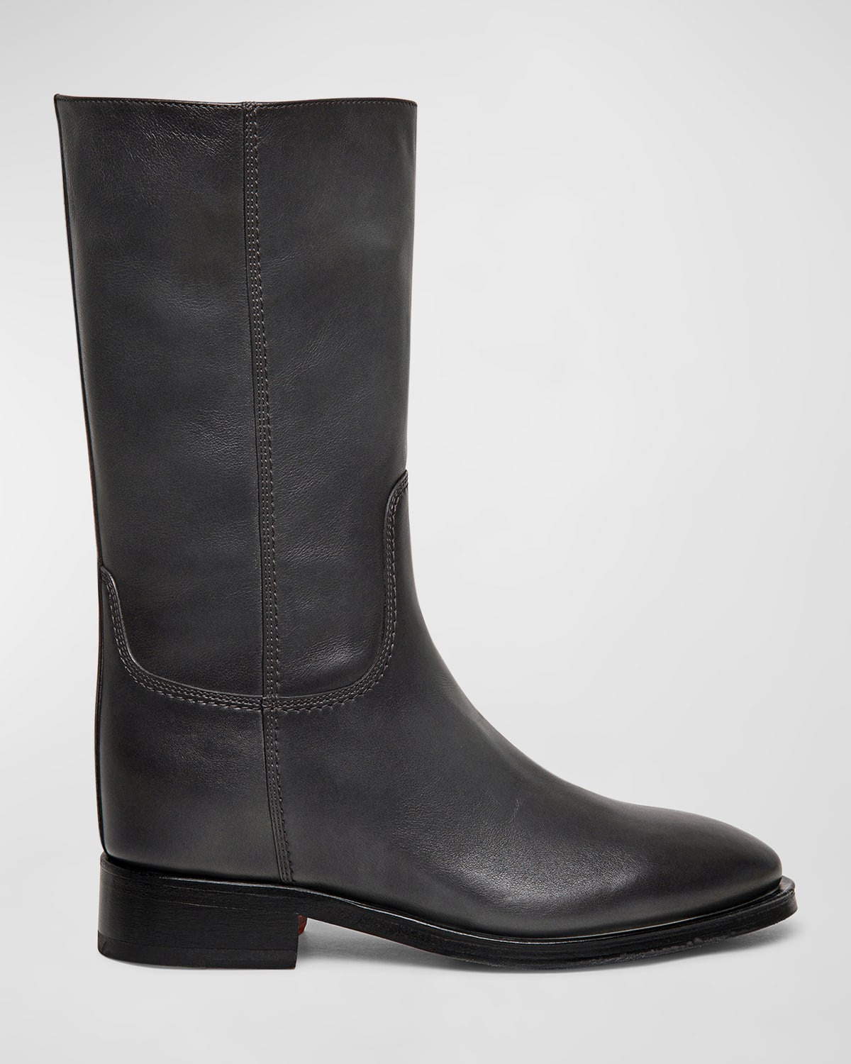 - Santoni smooth leather mid boots - Flat heel - Round toe - Pull-on style - Leather outsole - Lining: Leather - Made in Italy