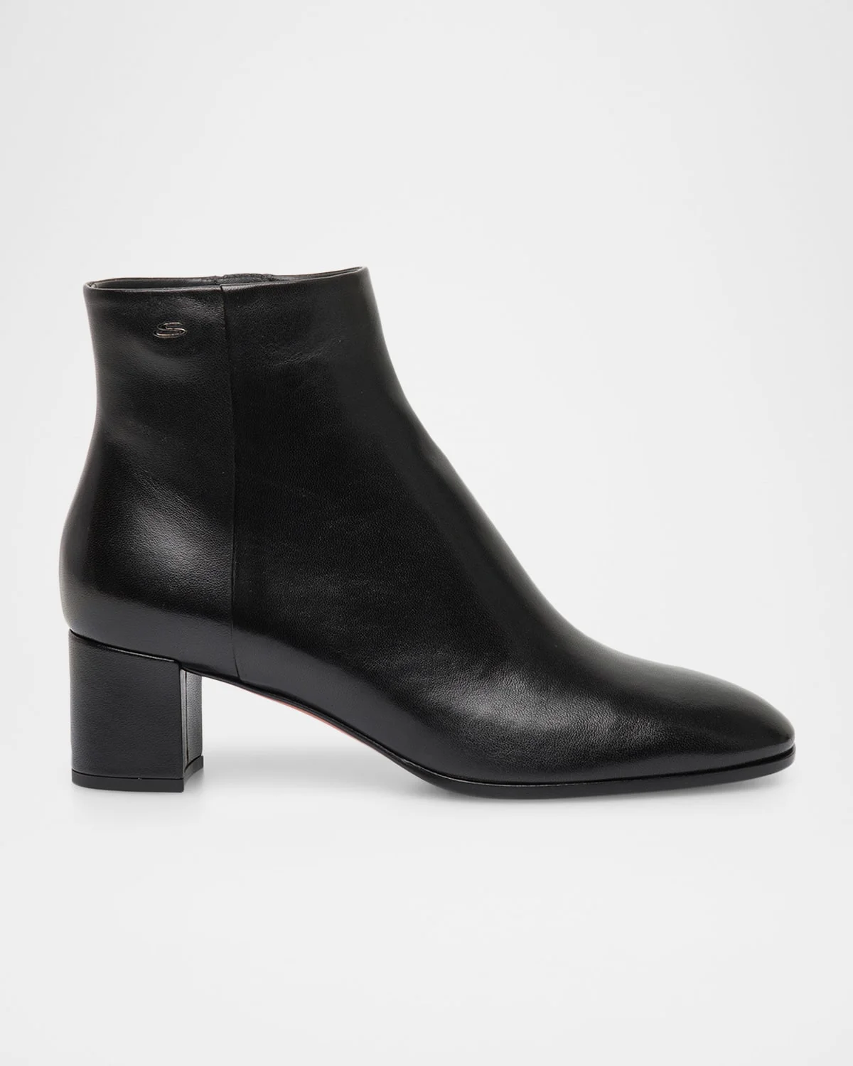 Santoni "Halfrida" soft nappa leather comfort ankle booties 2.00 in / 50 mm covered block heel Zip closure for easy on/off Almond toe Leather outsole Lining: Leather Made in Italy