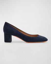 - Santoni soft suede pumps - 2.00 in / 50 mm block heel - Round toe - Slip-on style - Leather outsole - Lining: Leather - Made in Italy
