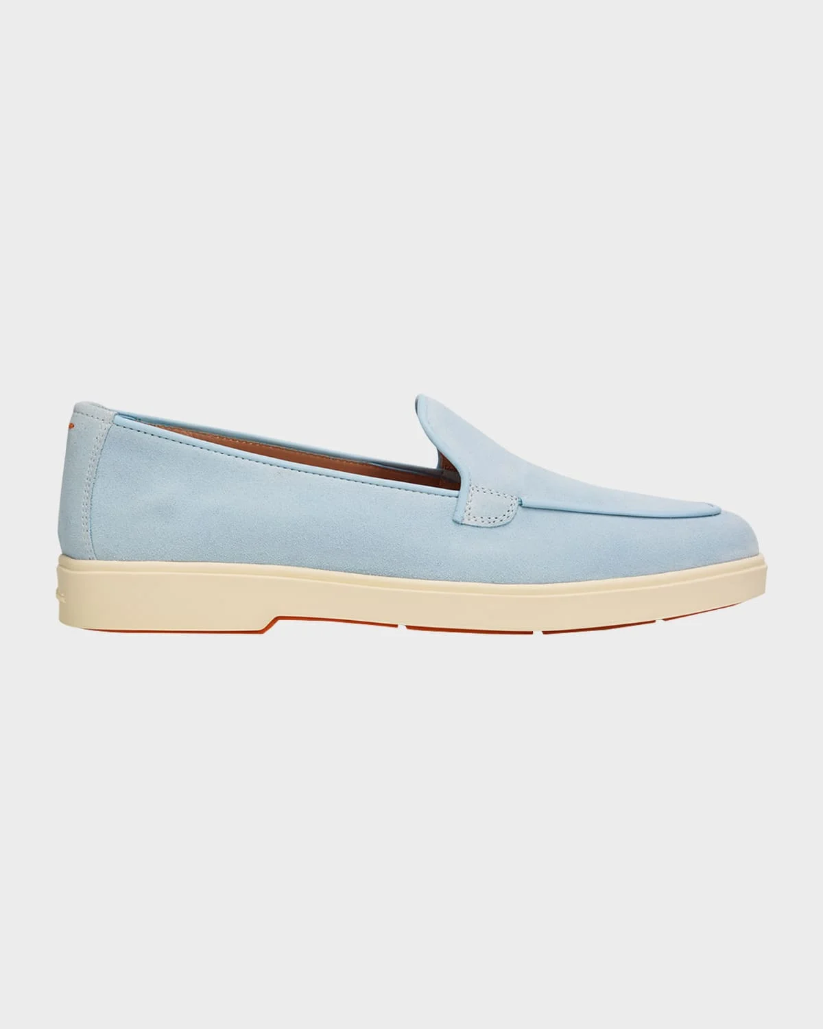 These Santoni loafers are designed in supple suede with tonal smooth leather piping & nbsp; 0.25 in / 10 mm flat heel Almond toe Notched vamp Slip-on style Rubber outsole Made in Italy