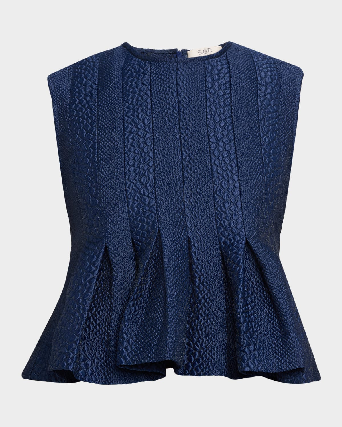 - Sea "Fayetta" embossed paneled tank top finished with pleating - Crew neckline - Sleeveless - Classic fit - Peplum hem - Invisible back zip - Polyester - Dry clean - Imported