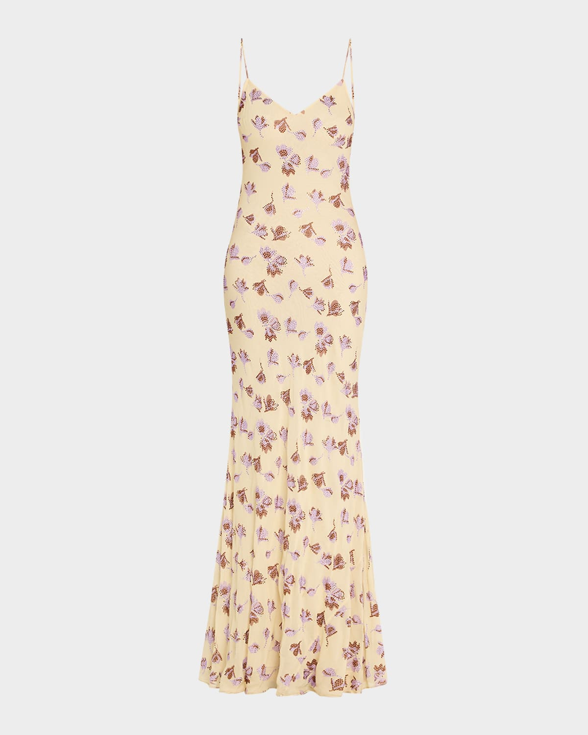 - Self-Portrait rhinestone-embellished floral georgette dress in a 90s-inspired minimalist silhouette - Scoop neckline - Sleeveless - Full length - A-line silhouette - Viscose - Dry clean - Imported
