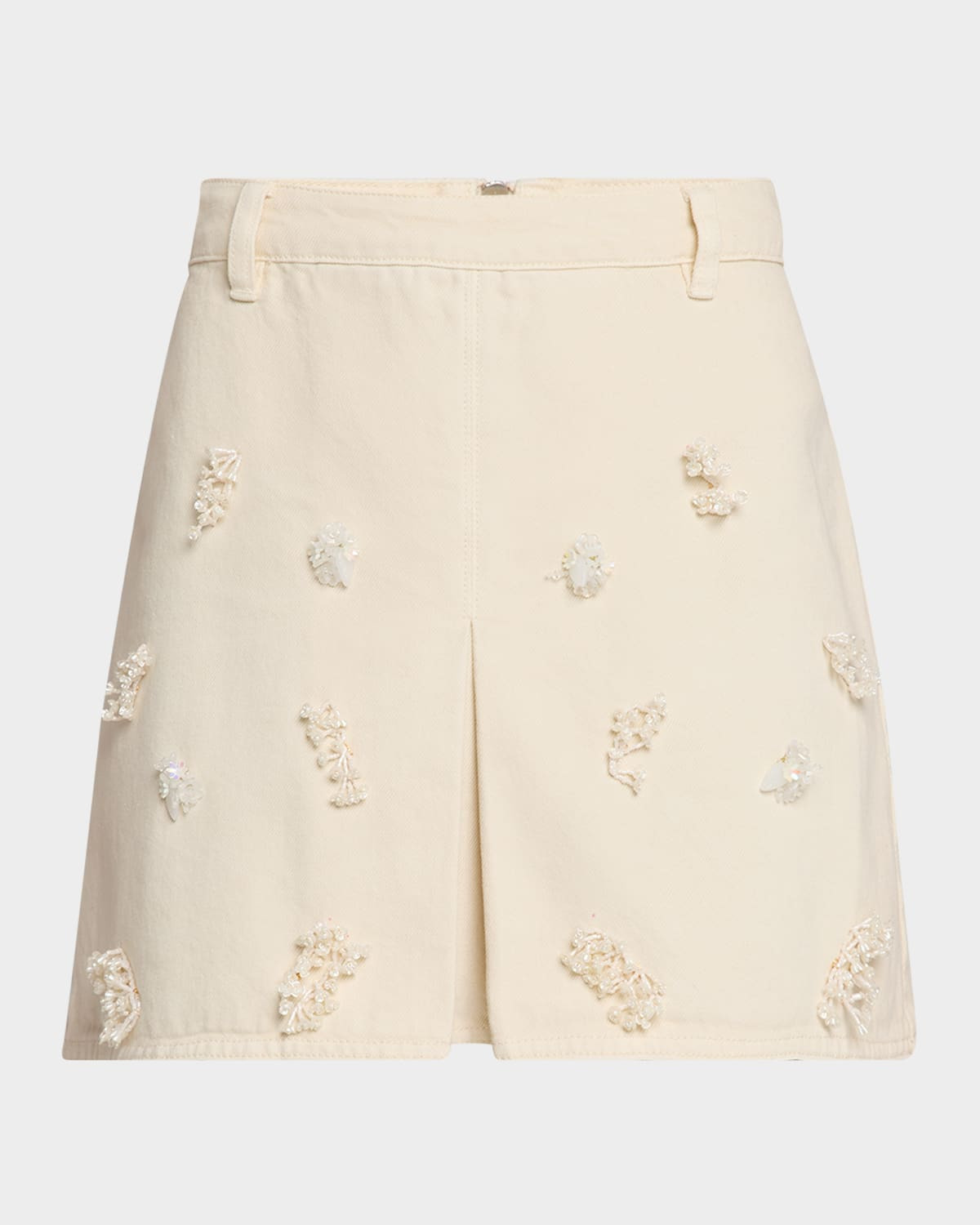 Cream Denim Beaded Floral Mini Skirt