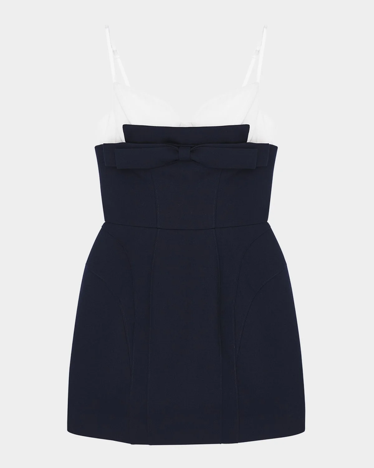 - SHUSHU/TONG wool-silk mini dress featuring paneled construction with a bow front - Sweetheart neckline - Adjustable straps - Structured, A-line silhouette - Hem falls above the knee - Center back zip - Wool/silk - Lining: Wool/linen - Dry clean - Imported