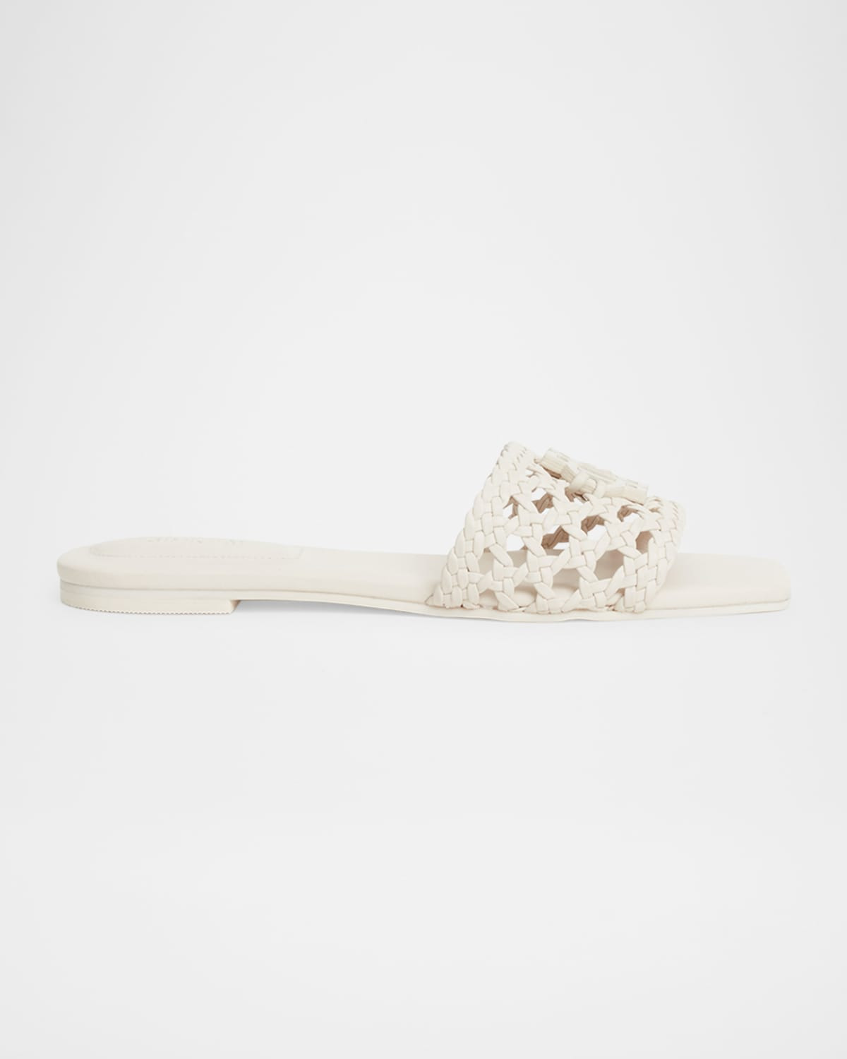 - SIMKHAI "Dion" vegan leather sandals feature a woven band upper - 0.25 in / 10 mm flat heel - Open toe - Slip-on style - Rubber outsole - Lining: Leather - Spot clean, wipe clean - Made in Brazil
