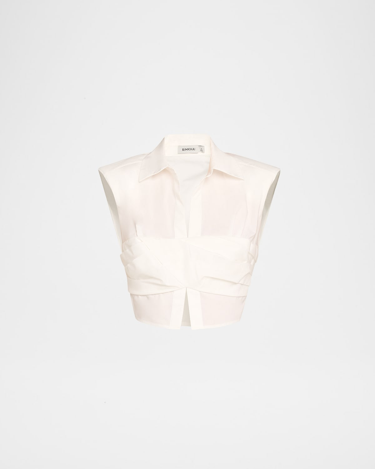 - SIMKHAI "Emie" poplin top mimic the contours of a bandeau layered over an open-front Oxford shirt - Spread collar - Sleeveless - Cropped hem - Fitted - Concealed hook and eye side closure - Cotton - Dry clean - Imported