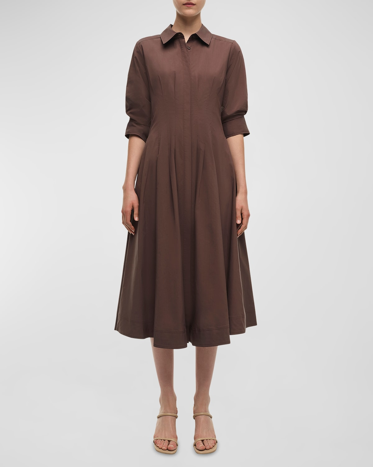 Jazz Pintuck 3/4-Sleeve Midi Shirtdress