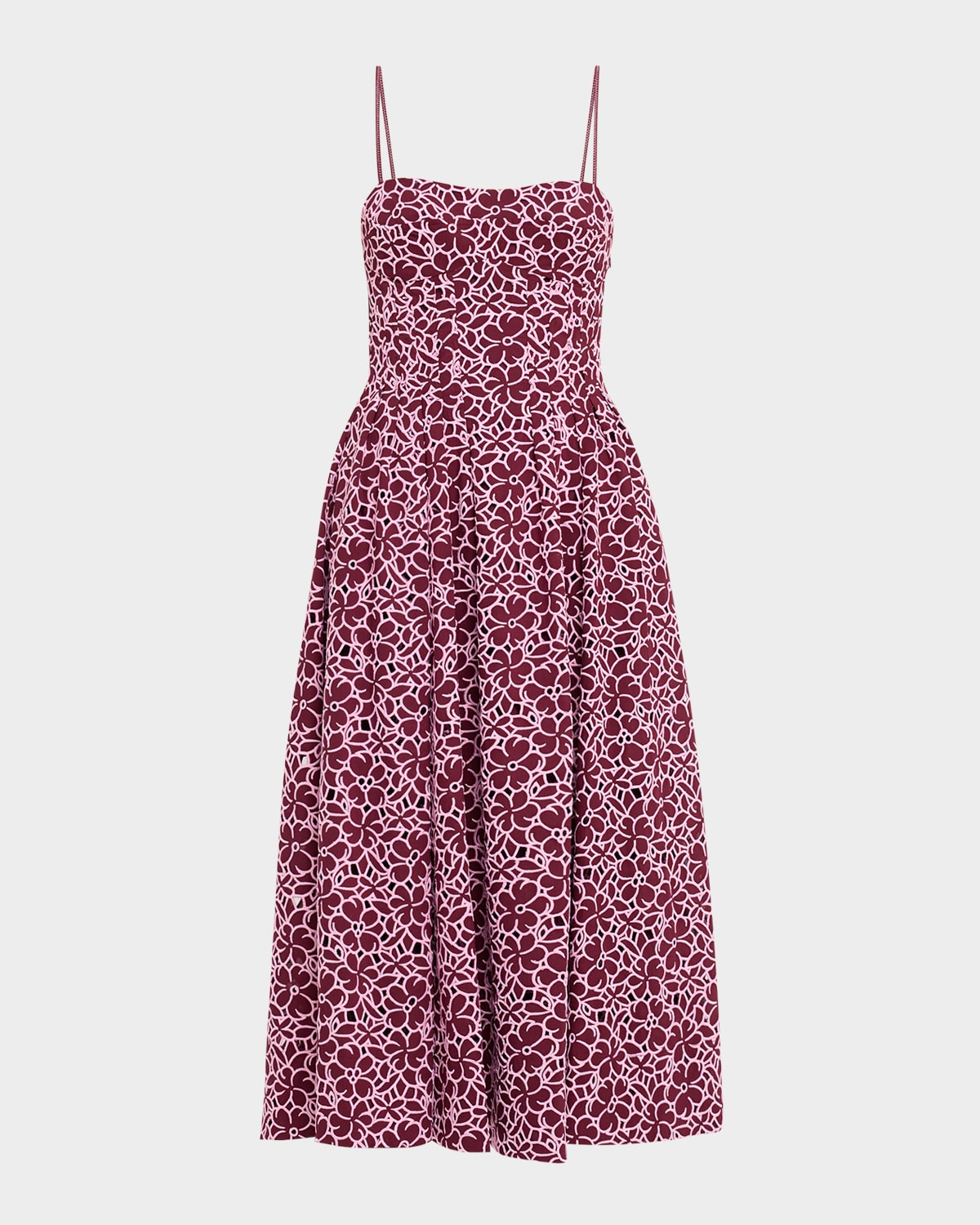 - SIMKHAI "Kittiya" floral embroidered cotton midi dress - Square neckline - Adjustable spaghetti straps - A-line silhouette - Hem falls below the knee - Side zip - Cotton - Dry clean - Imported