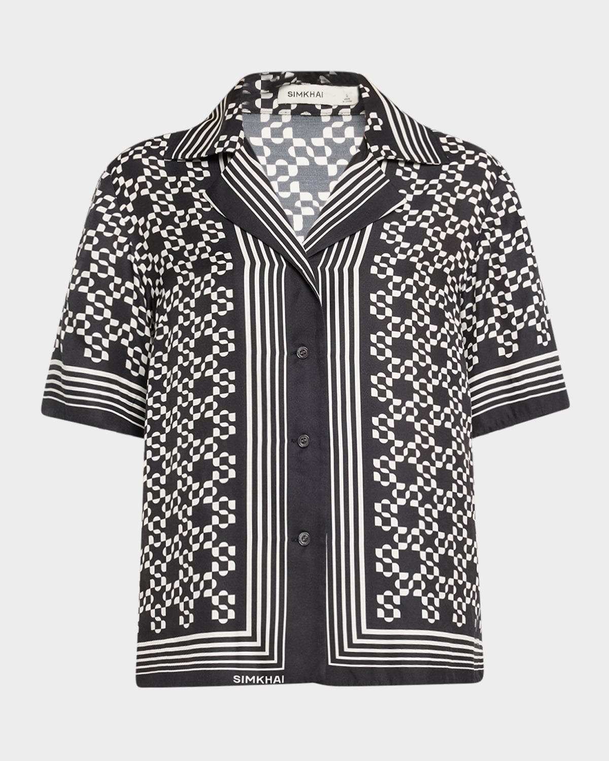 - SIMKHAI "Koda" lustrous silk-blend shirt - Camp collar - Elbow-length sleeves - Hip length - Relaxed fit - Button front closure - Tencel® lyocell/silk - Dry clean - Made in USA