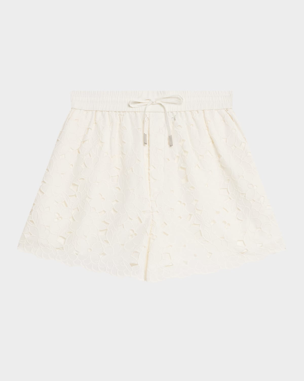 - SIMKHAI "Laurence" floral embroidered cotton shorts - High rise - Four-pocket style - Adjustable drawstring waist - Relaxed fit - Pull-on style - Cotton - Dry clean - Imported