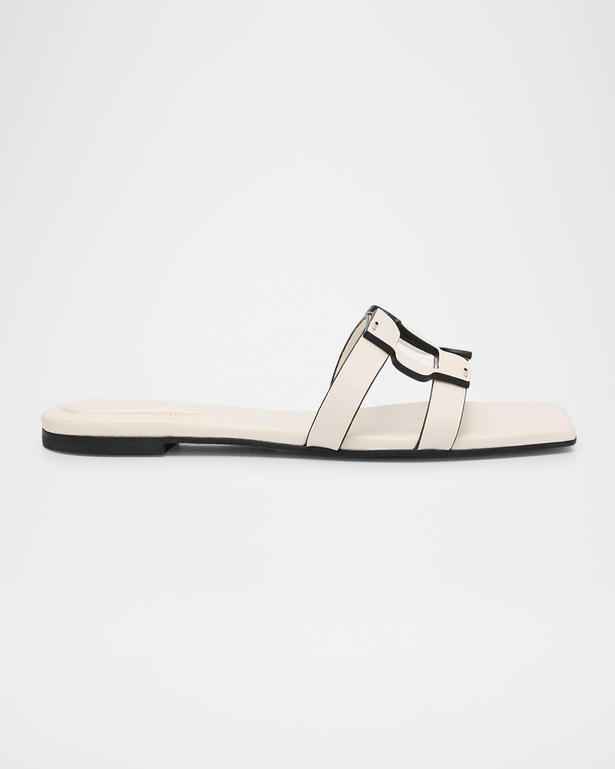 - SIMKHAI calf leather sandals with monogram detail - Flat heel - Open toe - Slide style - Leather outsole - Lining: Leather - Fits true to size - Made in Brazil