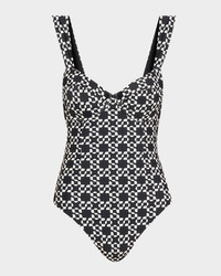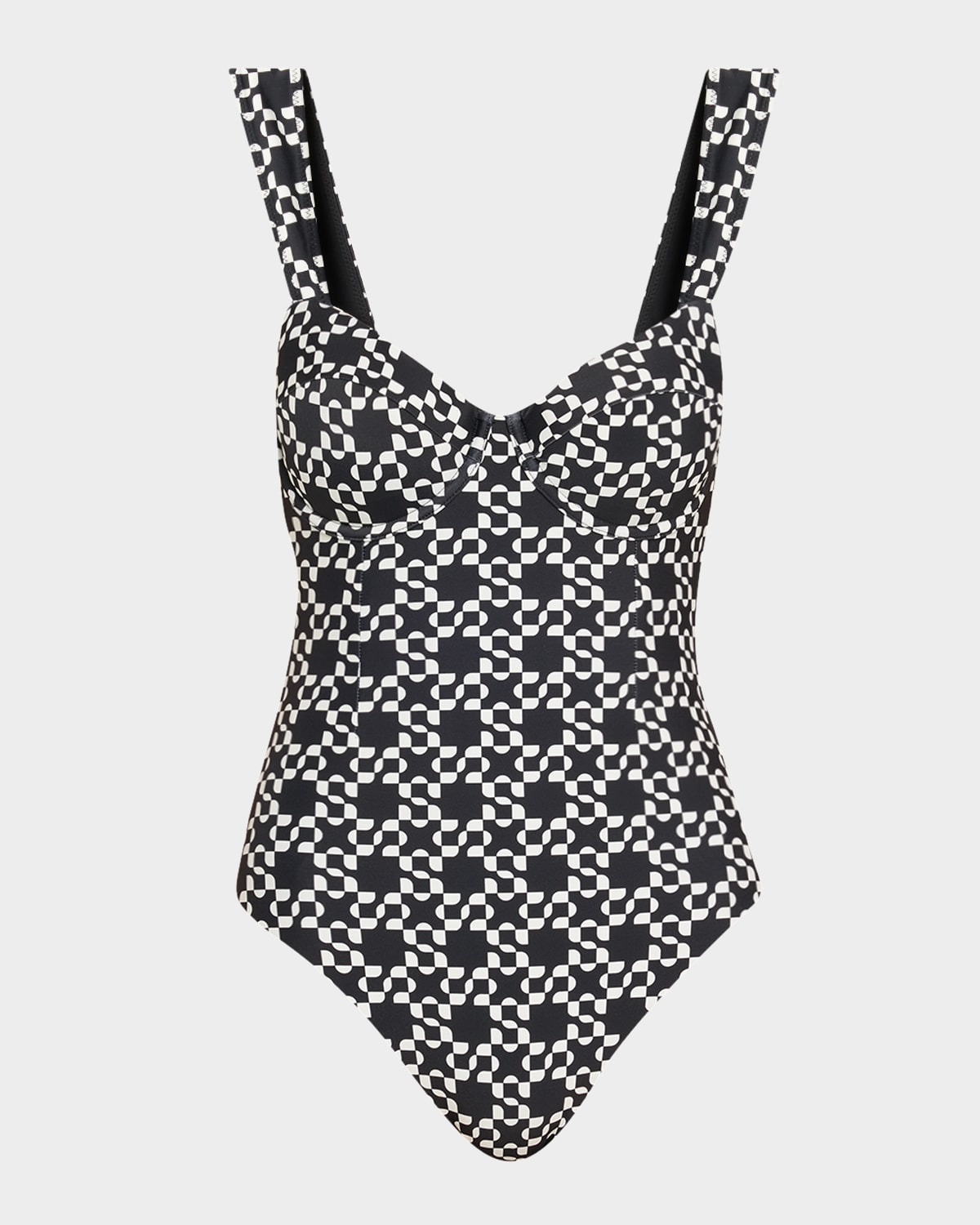 - SIMKHAI "Lexi" bustier one-piece swimsuit - V neckline - Fixed shoulder straps - Supportive underwire cups - Cheeky seat coverage - Nylon/polyamide/elastane - Hand wash or dry clean - Made in USA