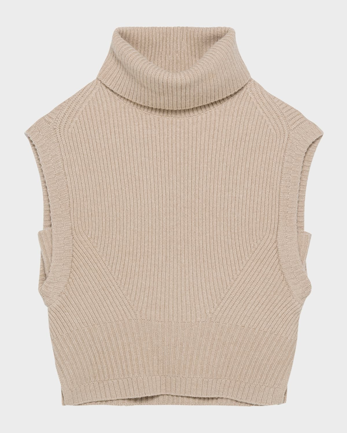 SIMKHAI "Maple" luxurious cashmere sweater vest Rolled turtleneck Cap sleeves Relaxed fit Hem falls to the hip Pullover style Cashmere Dry clean Imported