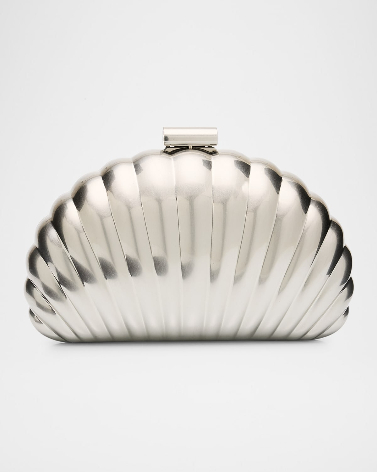 - SIMKHAI "Monet" shell clutch bag in aluminum - Detachable chain shoulder strap - Can be worn as a clutch or shoulder bag - Structured top with kiss-lock closure - Lining: Polyester - Approx. 4.7"H x 8.1"W x 2.7"D - Imported