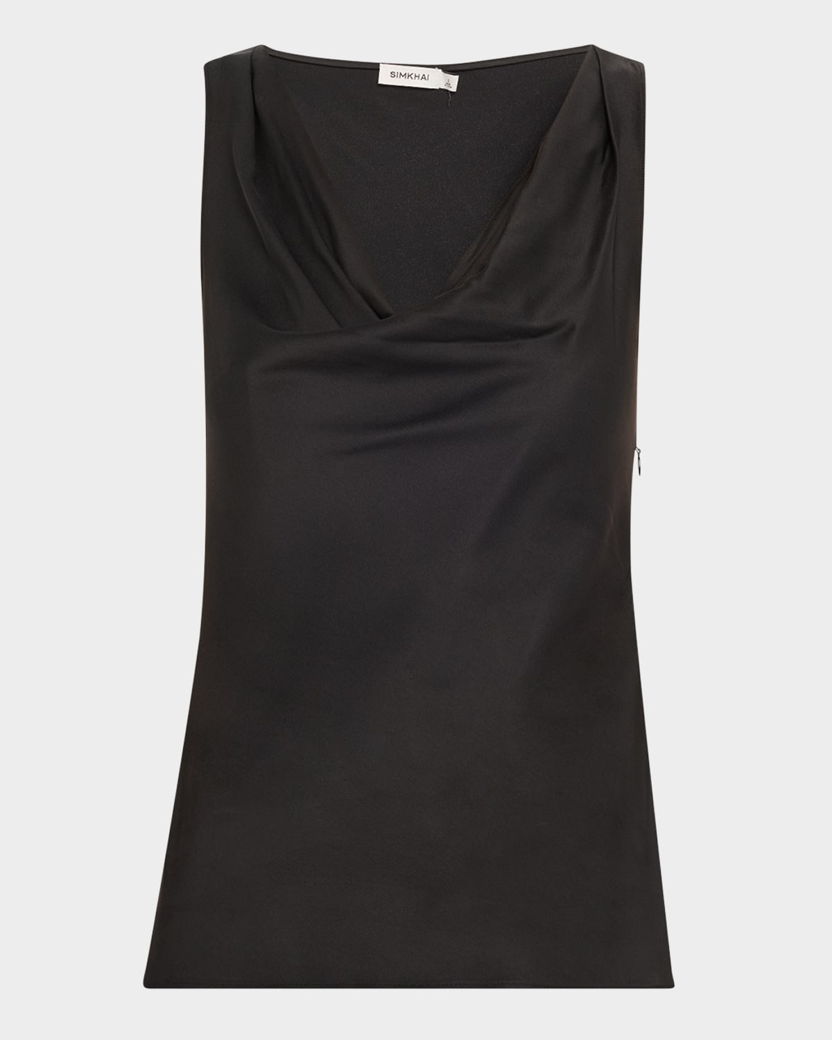 - SIMKHAI "Nubia" satin top - Plunging cowl neckline - Sleeveless - Draped fit - Hem falls to the hip - Pullover style - Acetate/polyester - Dry clean - Imported