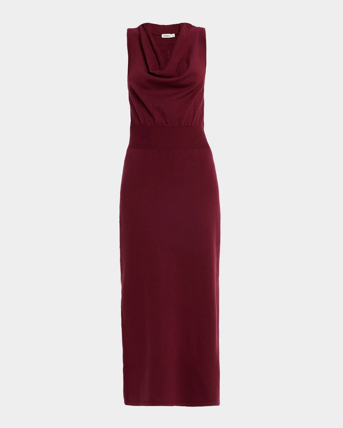 SIMKHAI "Ramona" knit midi dress finished with a draped bodice Cowl neckline Sleeveless Column silhouette Side slit hem Slipover style Tencel® lyocell/polyester Dry clean Imported