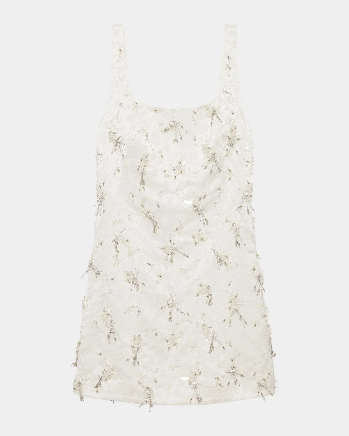 Viva Embellished Floral-Embroidered Satin Mini Dress white