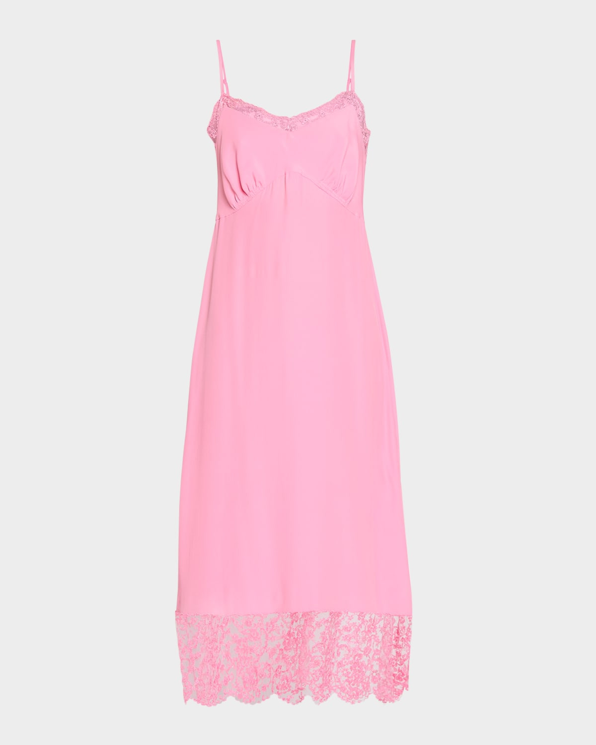 - Simone Rocha slip dress with lace trim - Sweetheart neckline - Adjustable shoulder straps - Bias-cut silhouette - Midi length - Slipover style - Acetate/silk - Dry clean, professional cleaning recommended - Made in Portugal