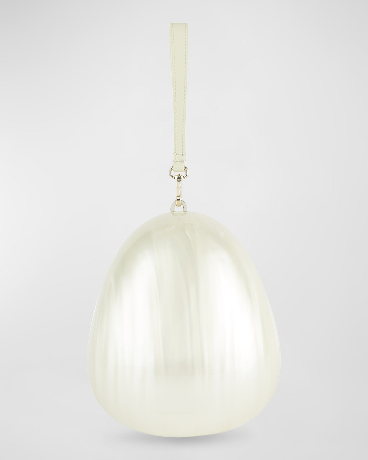 - Simone Rocha egg-shaped pearly crossbody bag in acrylic - Detachable top handle - Detachable pearly crossbody strap, 21"L - Can be worn as a top handle or crossbody bag - Structured top with magnetic closure - Lining: Viscose - Approx. 8.7"H x 6.3"W x 5.1"D - Item Weight (Lbs.): 1.0 - Imported Online Inquiries: NMS21_V6A2E Store Inquiries: #4848093