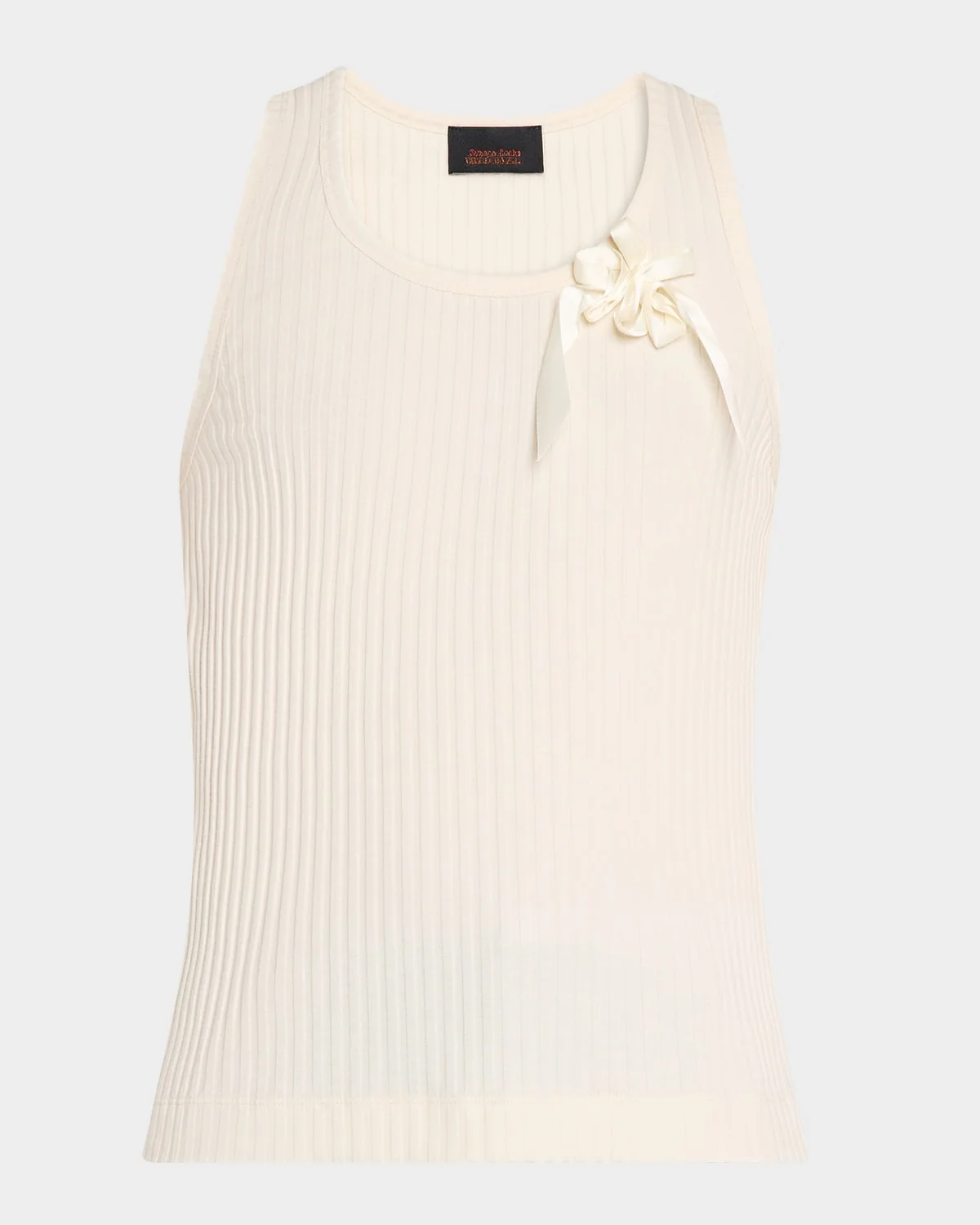 Simone Rocha ribbed shirt, showcasing a ribbon daisy ornament on the chest Rounded neckline Sleeveless Pullover style Cotton/elastane Hand wash or dry clean Made in Portugal