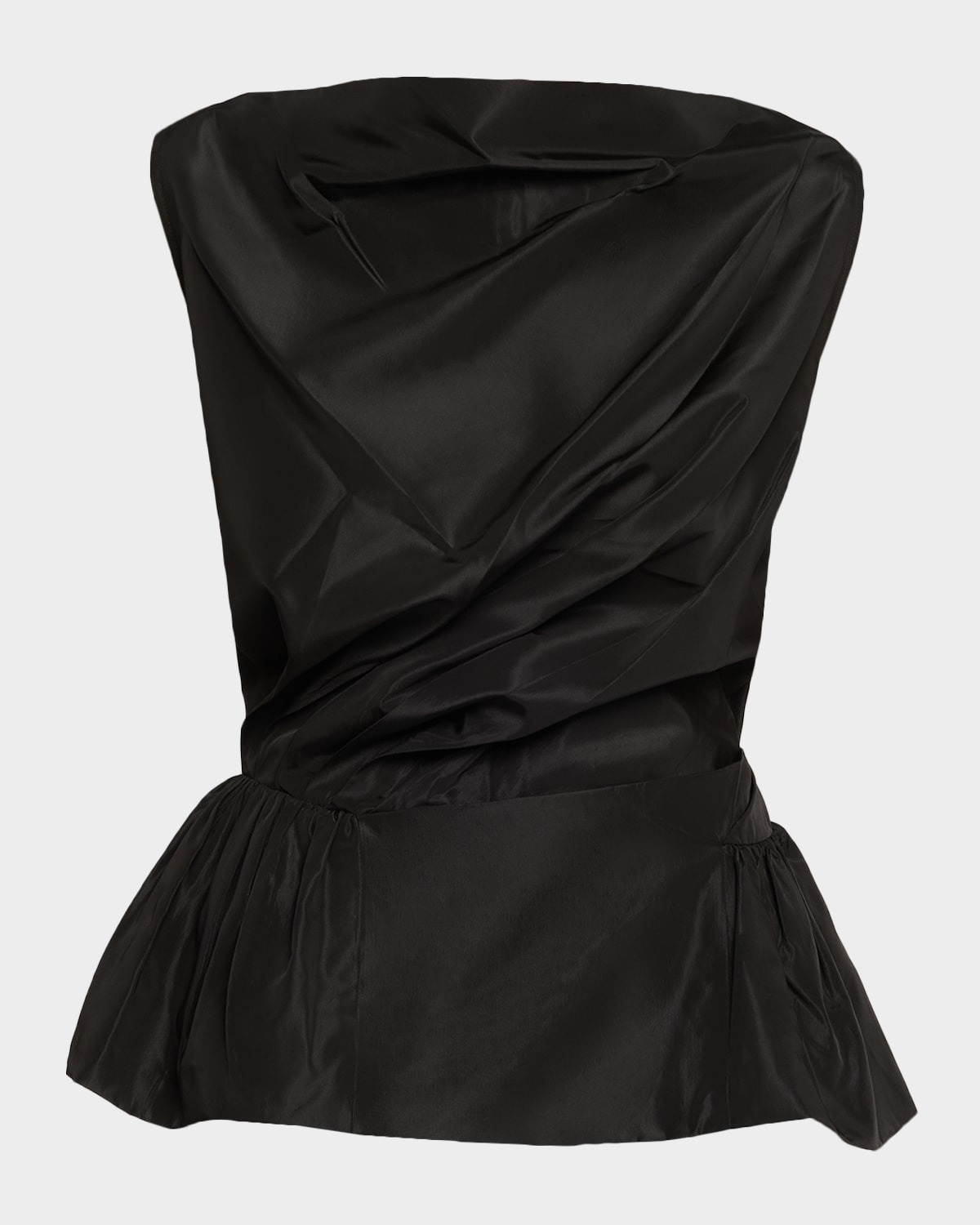 - Simone Rocha peplum top featuring a draped front and gathered flounce hips - High neckline - Sleeveless - Fitted - Peplum flounce hem - Back zip - Acetate/polyester/viscose - Made in Portugal