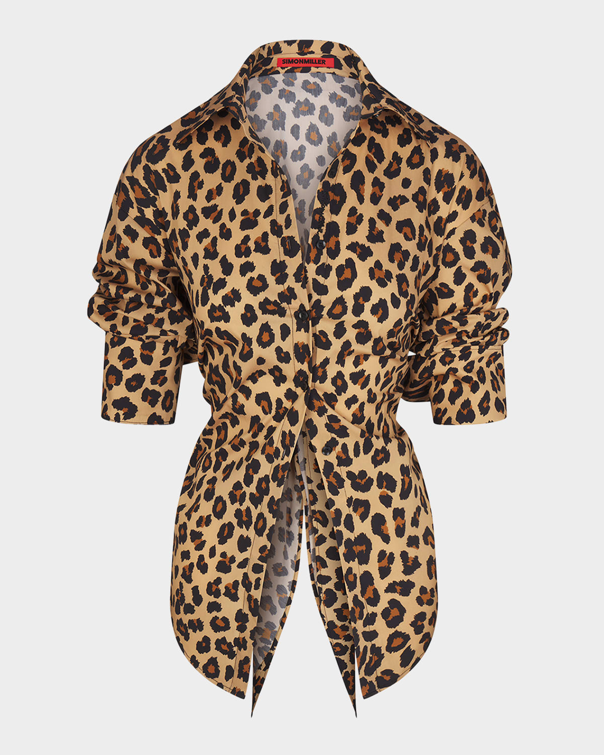 SIMONMILLER "Loch" striped poplin shirt featuring a cutout back with an adjustable tie Approx. 30"L from shoulder to hem Spread collar; button front Long sleeves; button cuffs Dropped shoulders Curved hem Slim fit Cotton/nylon/spandex Imported