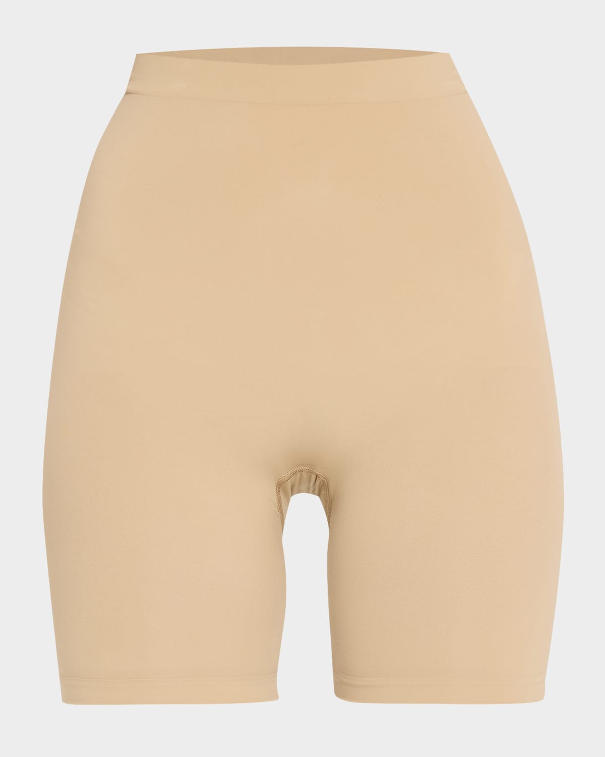 SKIMS shorts with strong targeted compression for shaping Interior waistband with a silicone band to prevent rolling Strong compression along the tummy, waist, and thighs Midthigh length Formfitting Nylon/polyamide/elastane Imported