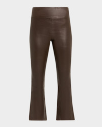 High-Waist Flare-Leg Cropped Leather Leggings